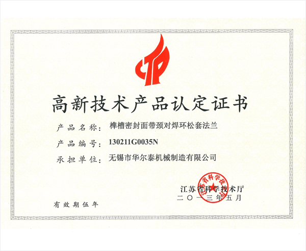 榫槽密封面带颈对焊环松套法兰