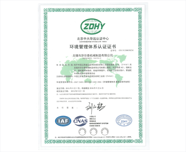 环境管理体系认证证书